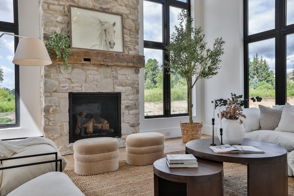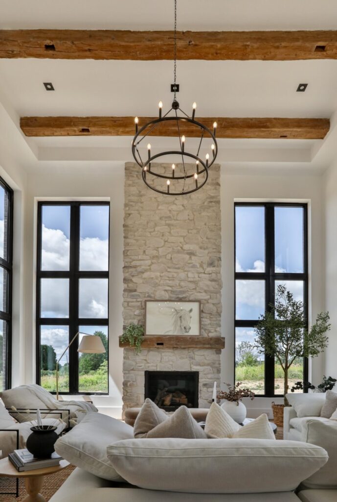 At 18 Lincolnville Lane, your dream modern farmhouse comes alive on a vast 1.1-acre lot. This new custom estate weaves luxury into every detail, crafting a story of timeless elegance. Soaring 22-foot ceilings adorned with authentic farmhouse beams frame the great room, anchored by a grand stone fireplace. Sunlight floods through towering windows, highlighting Sub-Zero and Wolf appliances, smart toilets, and designer fixtures throughout. With 1+2 kitchens, 4+2 bedrooms and 5 bathrooms, two offering steam showers, this home is a haven.