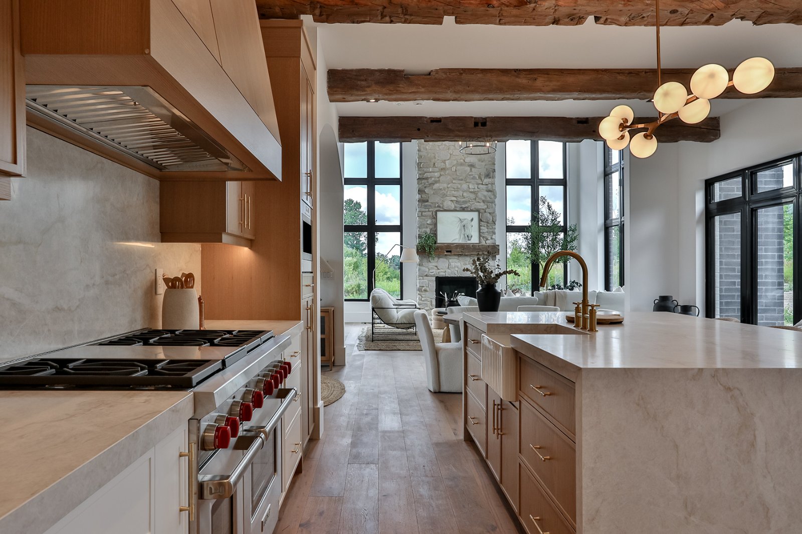 At 18 Lincolnville Lane, your dream modern farmhouse comes alive on a vast 1.1-acre lot. This new custom estate weaves luxury into every detail, crafting a story of timeless elegance. Soaring 22-foot ceilings adorned with authentic farmhouse beams frame the great room, anchored by a grand stone fireplace. Sunlight floods through towering windows, highlighting Sub-Zero and Wolf appliances, smart toilets, and designer fixtures throughout. With 1+2 kitchens, 4+2 bedrooms and 5 bathrooms, two offering steam showers, this home is a haven.